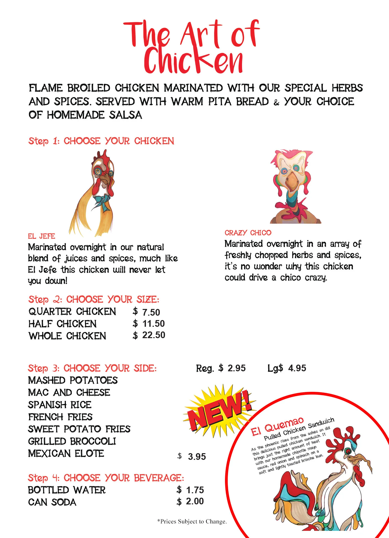 Menu The Art Of Chicken Restaurant